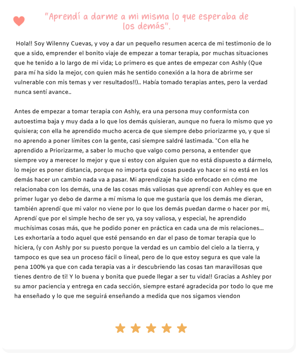 Soy Ashly Barrios, psicóloga especializada en Autoestima, Apego y Heridas de la infancia. he acompañado a más de 1000 mujeres alrededor del mundo a sanar su Apego, romper patrones y Empoderar su Autoestima. Mujeres que entendieron que su pasado no define su presente.
