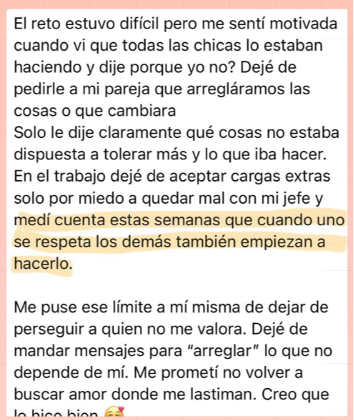 Eres merecedora: Desinstalas la idea de que necesitas “hacer más” para que te amen. Empiezas a ver el amor como algo que se recibe, no que se gana. Aprendes a celebrar tus logros